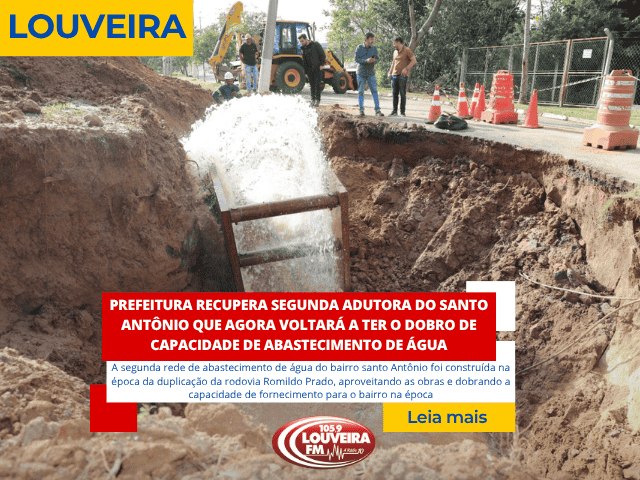 Prefeitura de Louveira, através do SAE, está realizando uma importante obra de reparo na segunda adutora principal de abastecimento de água para o bairro Santo Antônio, que por falta de manutenção há dois anos, estava desativada até agora.